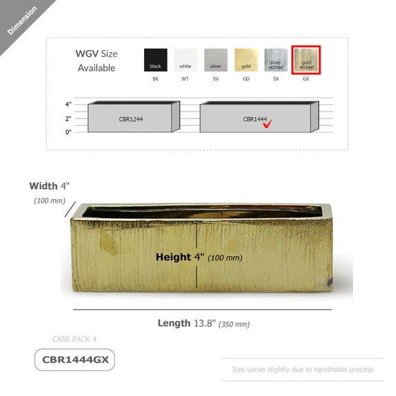 CBR1444GX – Textured Gold Long Flat Rectangle – 14″x4″x4″
