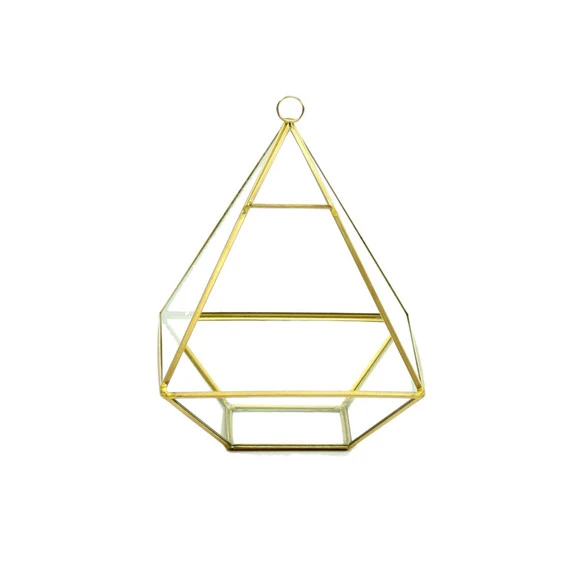GET0308GD – Gold Raised Pyramid Geometric Glass Terrarium – 8″