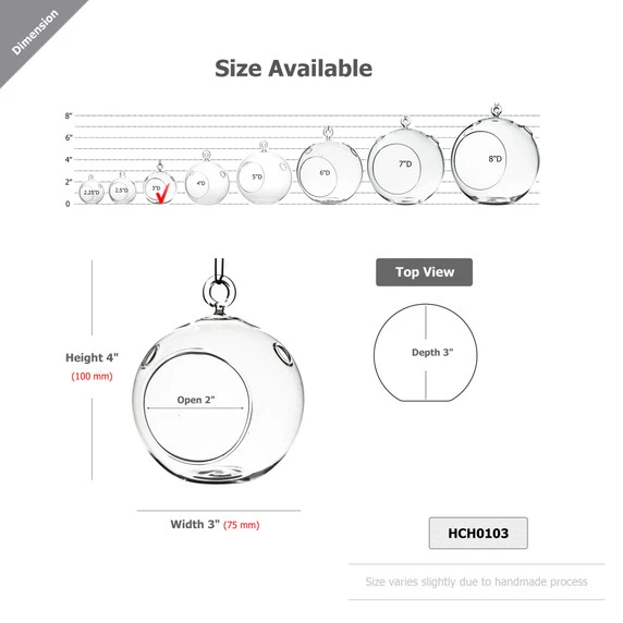 HCH0103 – Hanging Round Terrarium / Candle Holder – 3″ (72 pcs)