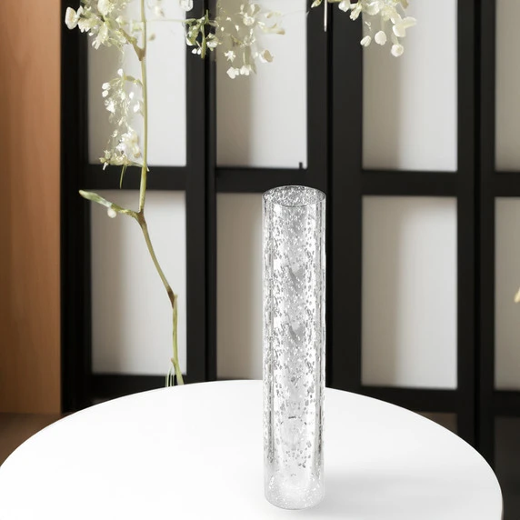 Welcome to our dazzling Silver Speckled Hurricane / Chimney Tube Vase Collection. It seamlessly blends elegance and practicality, intended to enhance your interior design and brighten your surroundings. This collection offers a range of sizes with enchanting silver mercury finishes, allowing you to choose the perfect fit for your decor.