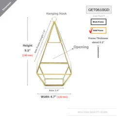 GET2006GD – Short Triangular Gold Obelisk Geometric Glass Terrarium 6″H –