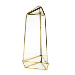GET2008GD – Triangular Gold Obelisk Geometric Glass Terrarium 8″H –