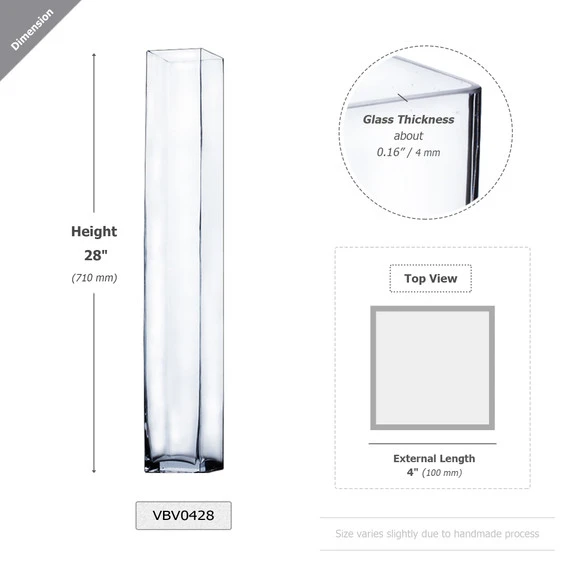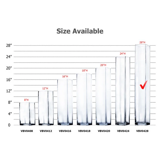 Introducing our exquisite Square Glass Block Vase Collection – a stunning array of meticulously crafted vases that elevate your floral arrangements, transform table centerpieces, and enhance both home and event décor. With sizes ranging from 2 inches to 12 inches in width and heights varying from 4 inches to 28 inches, this collection offers an impressive spectrum of possibilities to bring your creative visions to life.