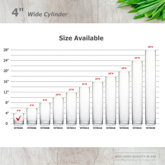 Introducing our exquisite collection of 4-inch diameter Cylinder Glass Vases, meticulously designed to infuse a touch of elegance and sophistication into every occasion. Ranging in height from 4 inches to 28 inches, these versatile vases have earned their place as our most sought-after choice for events, adding an air of refined charm to various settings.