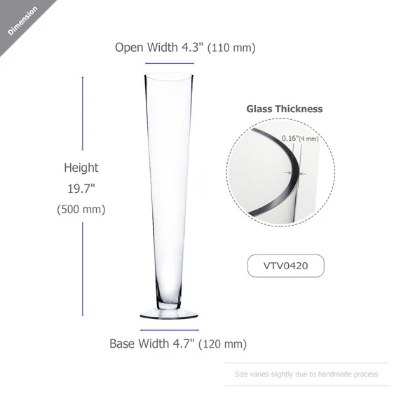 With heights ranging from 16 to 36 inches, our Trumpet Glass Vases offer a graceful and commanding presence. Whether you’re aiming for a subtle touch or a grand statement, these vases cater to your needs with their varied dimensions. The range allows you to play with height and composition, enabling you to curate visually captivating displays that draw attention and admiration.
