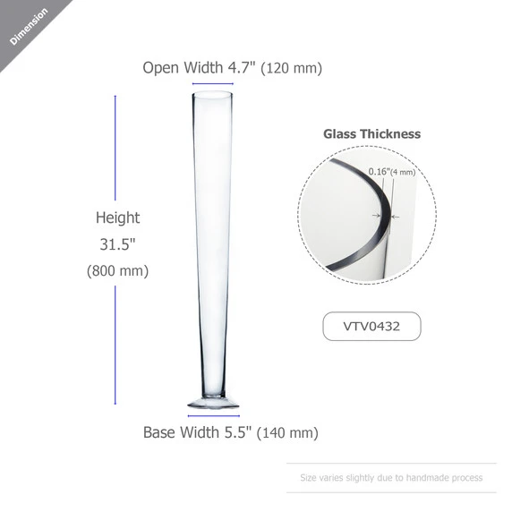With heights ranging from 16 to 36 inches, our Trumpet Glass Vases offer a graceful and commanding presence. Whether you’re aiming for a subtle touch or a grand statement, these vases cater to your needs with their varied dimensions. The range allows you to play with height and composition, enabling you to curate visually captivating displays that draw attention and admiration.